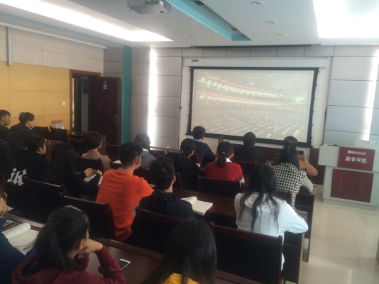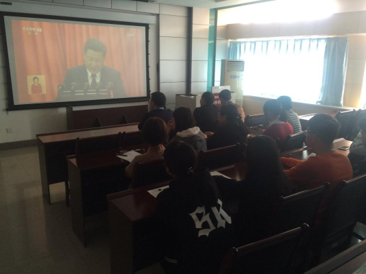 大会报告32440余字,历时210分钟,学院师生认真收看,详细记录,认真学习。会后,党委委员,员工工作组组长杨育鸿同志组织辅导员老师,员工党员代表进行座谈交流,学习报告要点,领会报告精神。